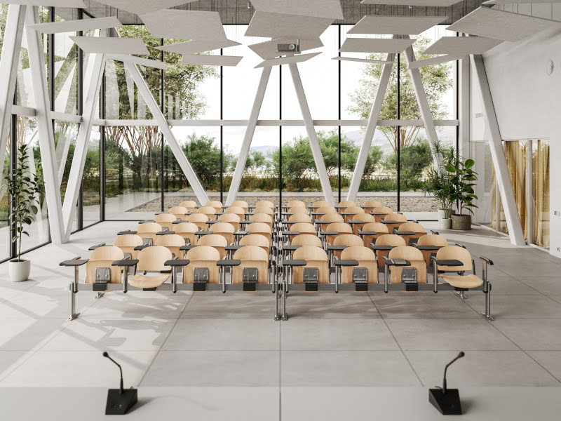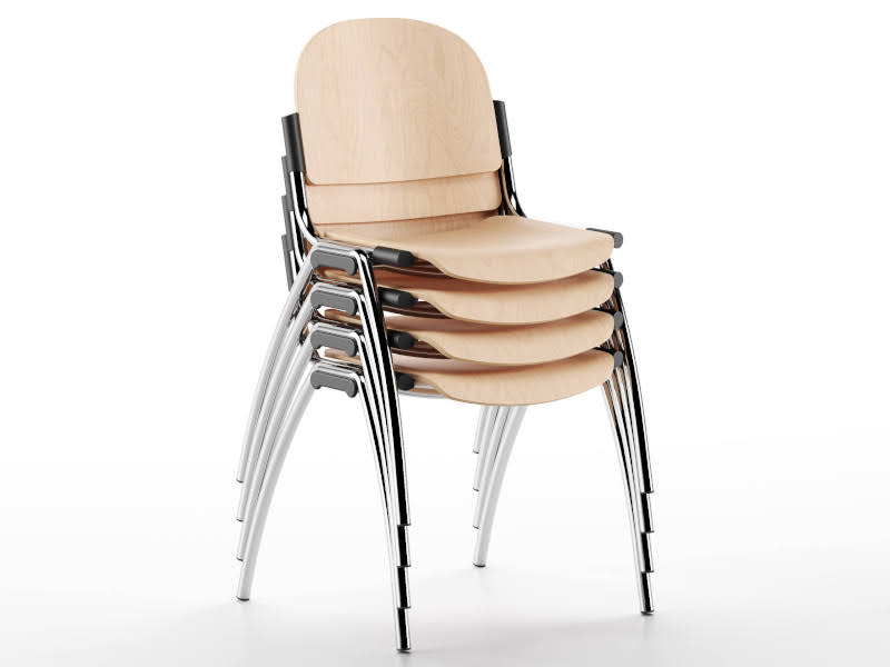 STACKABLE CHAIR Frame steel tube diam. mm.25. Beechwood seat and back. ACCESSORIES: Linking system.