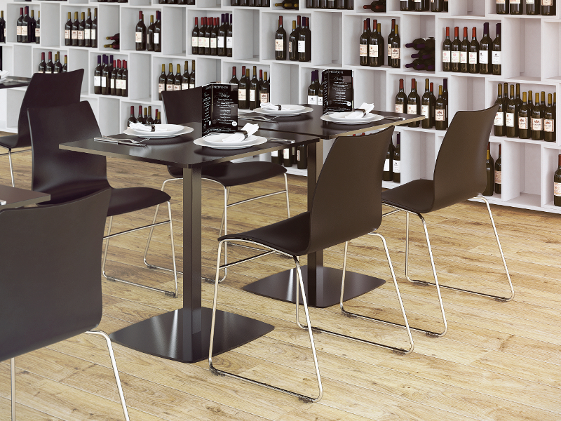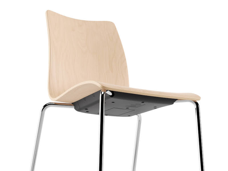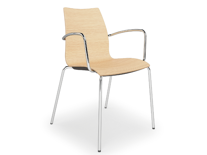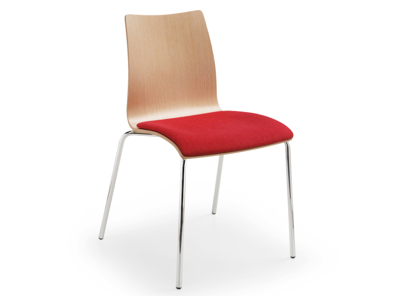 Struttura acciaio diam. mm.18 o tondino di acciaio diam. mm.11. Seduta in faggio o rovere verniciato. (Le dimensioni indicate sono relative alla sedia con struttura 4 gambe). PRODOTTO CERTIFICATO CAM ARREDI IN FAGGIO FSC VERNICIATO NATURALE IGNIFUGO.