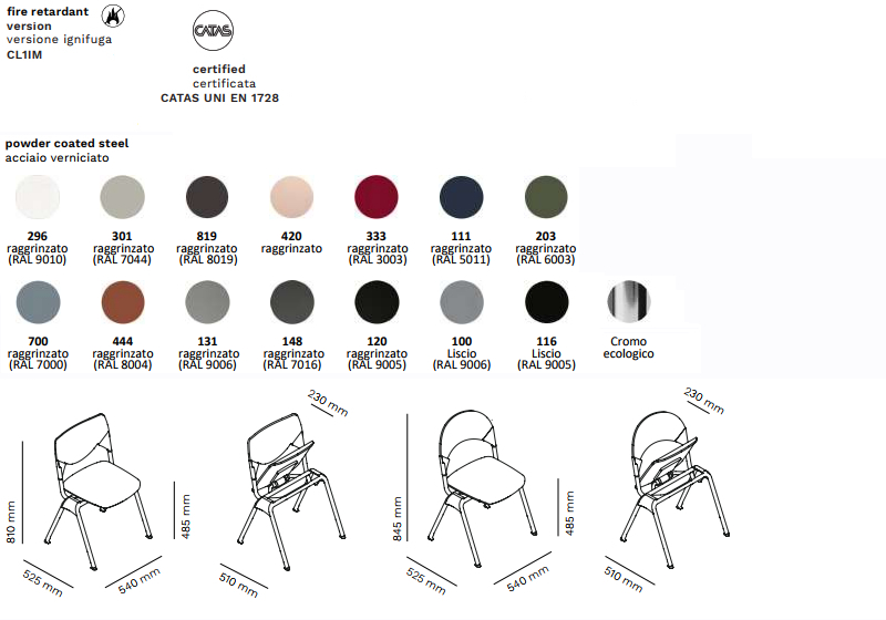 ACCESSORI: Agganci, braccioli, tavoletta scrittoio, sedile e schienale ignifughi cl. 1 IM.